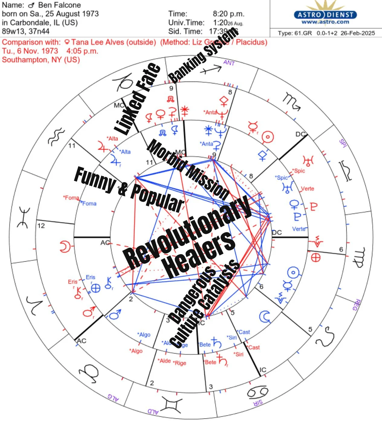Ben and I are close in age. Many of the “slower” planets are aligned in our synastry which suggests we’re potent as allies.