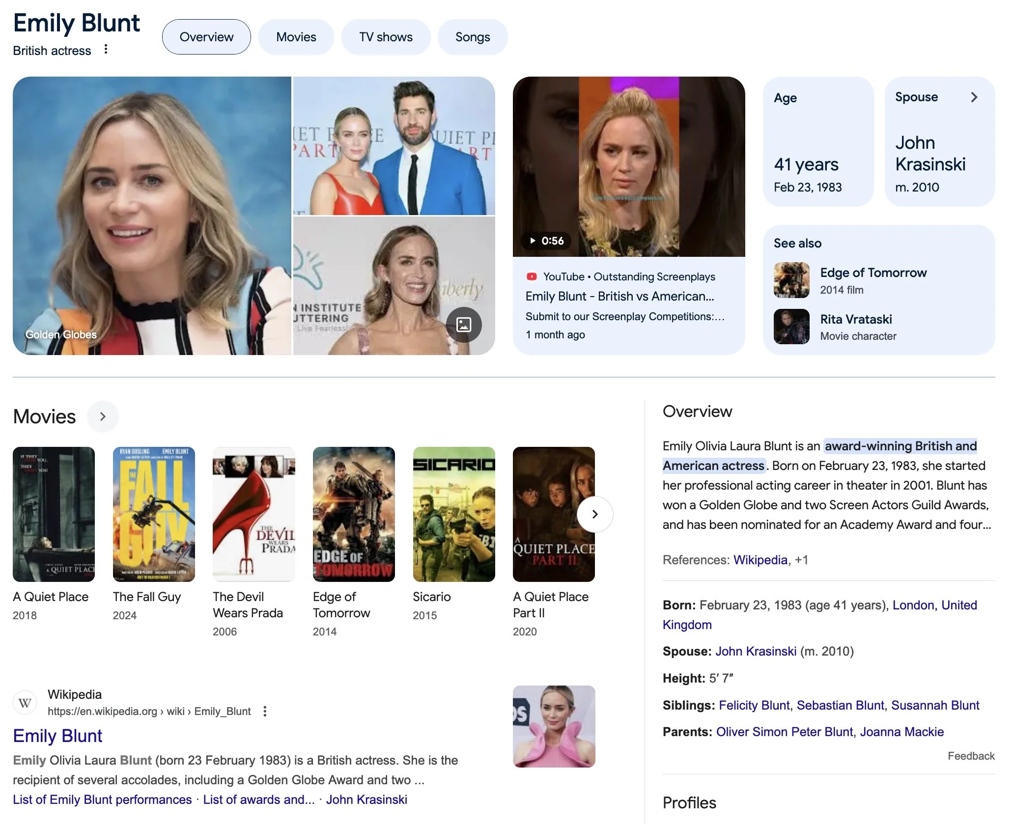 I’m always saying how this is backfiring on her. I’m the person who most wants friends who was denied any. Emily is exactly the kind of person that I would want in my life and she’s married to John Krasinski who also would be a fantastic person to know.