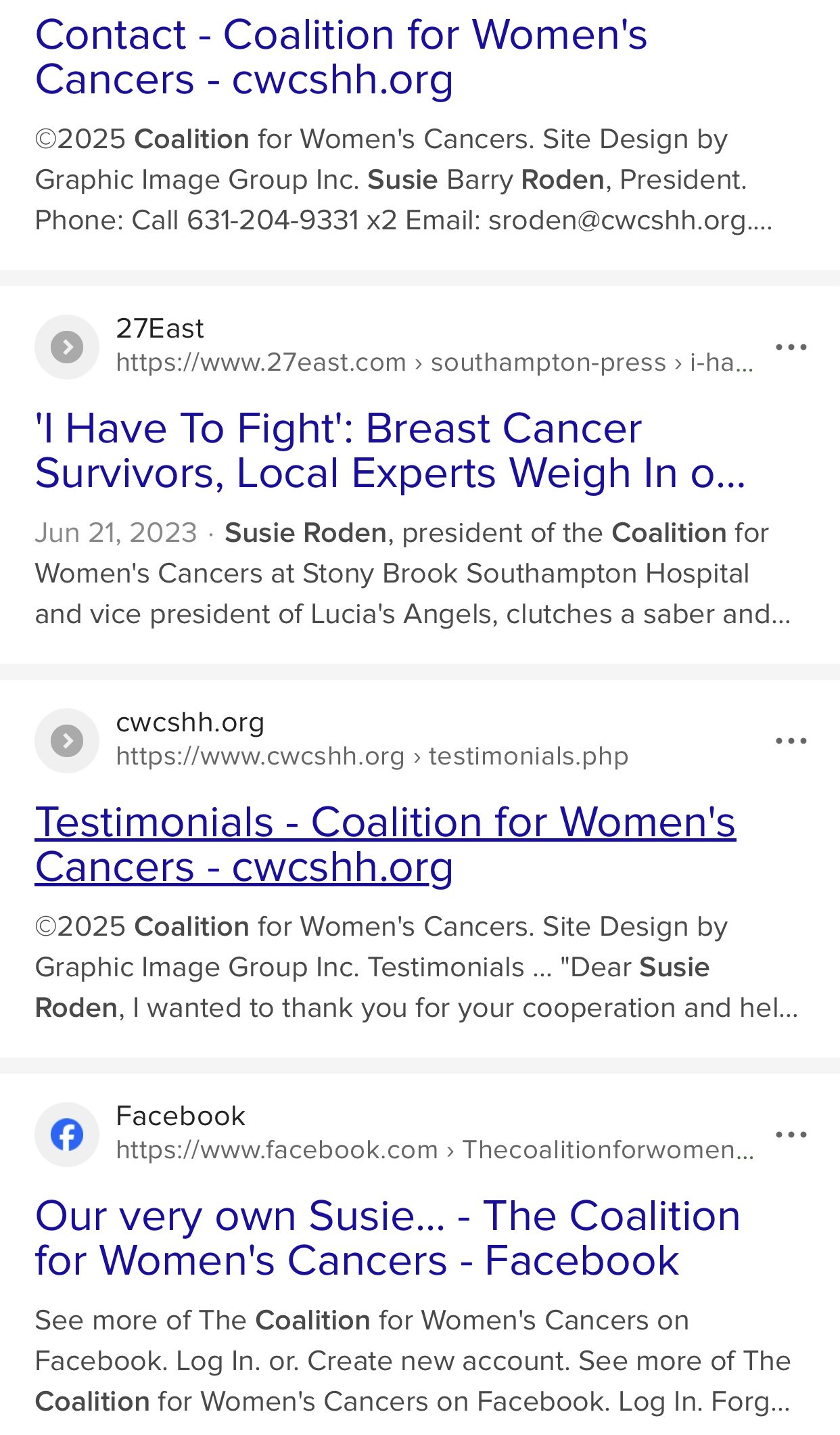 When I was putting art in public spaces, I thought it would be good to ask people to donate to a charity. I went to Susie Roden of the Coalition For Women’s Cancers at Southampton Hospital. She seemed hesitant but she went along with it.
