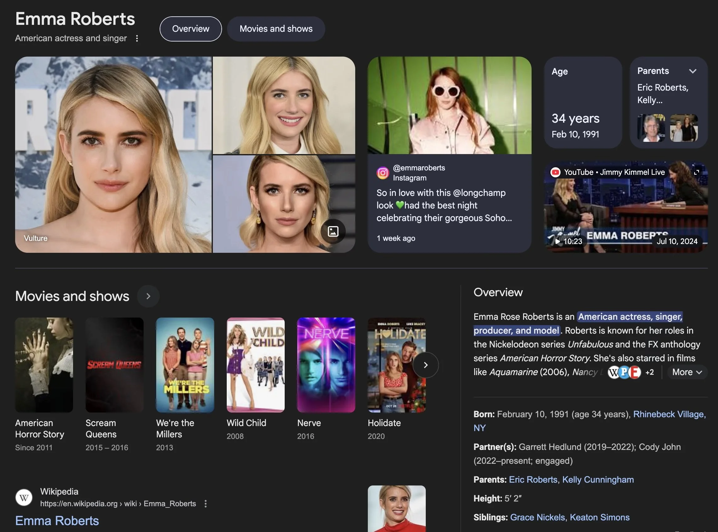 Emma is very known for playing an investigator. She got on my list when I was talking to her father Eric Roberts.