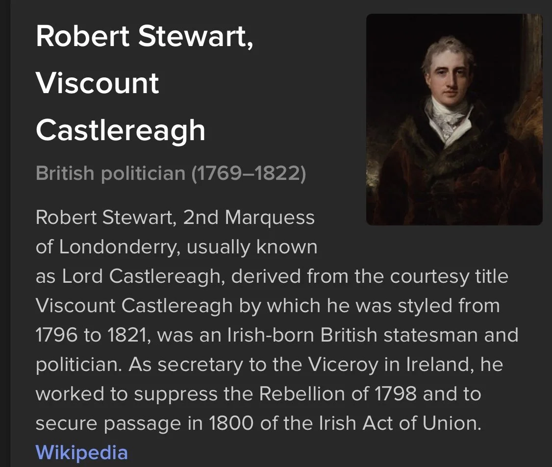 Robert was trying to set up the present rebellion. He is reminding me he was Irish. This is what the other 1 blamed for Napoleon’s mistreatment - Hudson Lowe - wanted me to remember.