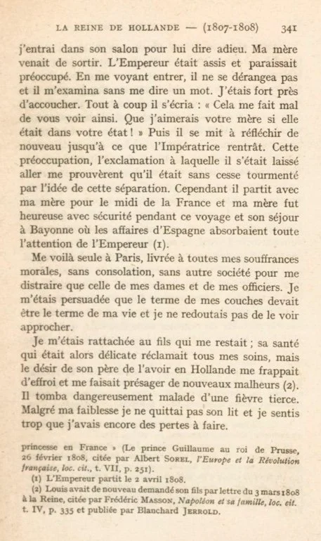A few days before he left for Bayonne, I entered his drawing-room to say good-bye. My mother was just leaving the room. The Emperor was sitting down and seemed thoughtful and preoccupied. As he saw me enter, he did not stir but looked at me closely without saying a word, the time for my confinement was very near.