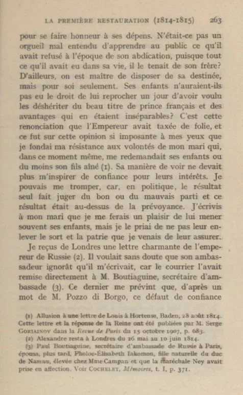 Let’s have another look at Hortense’s Memoirs. If you want to read the book it is available for free at the side bar in English and French. Use the widget on the sidebar to translate the text below into pretty much any language.