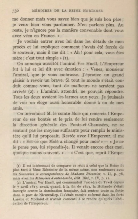Let’s have another look at Hortense’s Memoirs. If you want to read the book it is available for free at the side bar in English and French. Use the widget on the sidebar to translate the text below into pretty much any language.