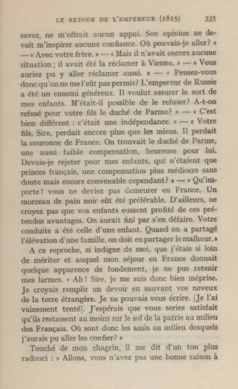 “Your son, Sire, had lost more than mine. He had lost the throne of France. People considered he was fortunate in securing even so small a compensation as the Duchy of Parma.