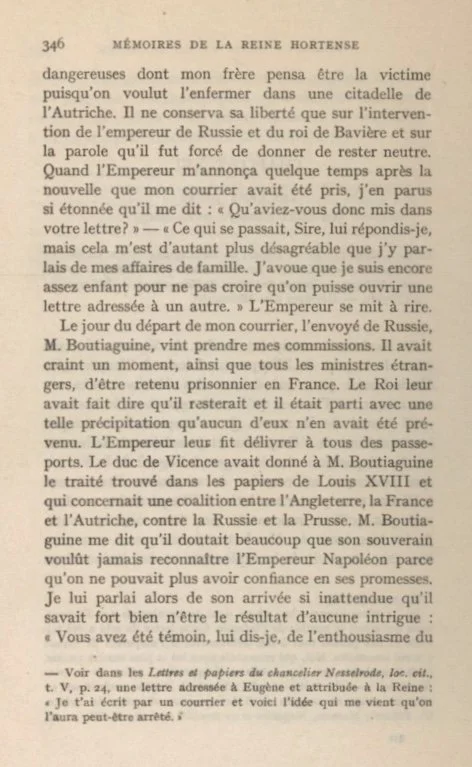 Let’s have another look at Hortense’s Memoirs. If you want to read the book it is available for free at the side bar in English and French. Use the widget on the sidebar to translate the text below into pretty much any language.