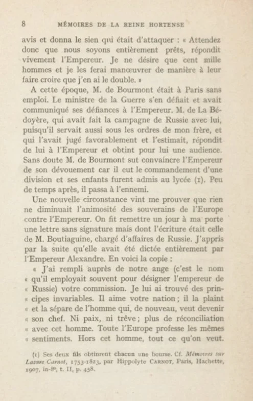 Let’s have another look at Hortense’s Memoirs. If you want to read the book it is available for free at the side bar in English and French. Use the widget on the sidebar to translate the text below into pretty much any language.