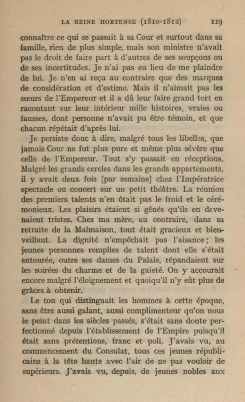 Let’s have another look at Hortense’s Memoirs. If you want to read the book it is available for free at the side bar in English and French. Use the widget on the sidebar to translate the text below into pretty much any language.