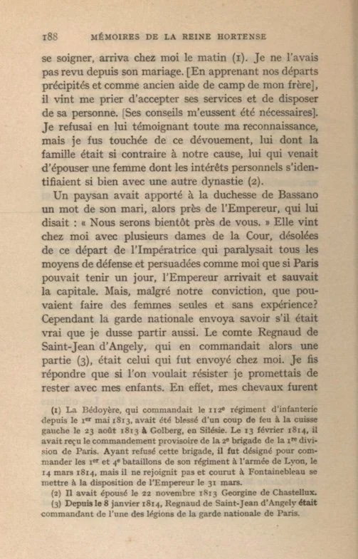 Toward nightfall Comte Regnaud de Saint-Jean-d'Angely, greatly excited, came and asked me on behalf of the National Guard itself not to stay in the city. He added that the enemy had already seized the heights, that the city would doubtless be bombarded and stormed the following morning ; anything was liable to take place, and not only was I to consider myself freed from my promise, but his troops would prefer to know that I and my children were out of danger.