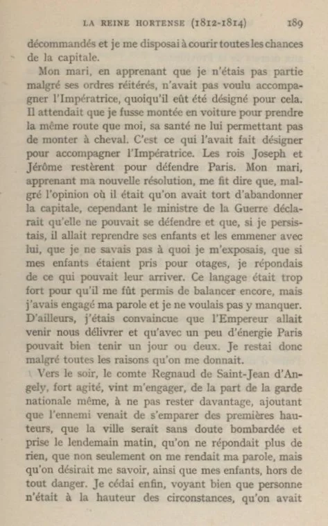 Let’s have another look at Hortense’s Memoirs. If you want to read the book it is available for free at the side bar in English and French. Use the widget on the sidebar to translate the text below into pretty much any language.