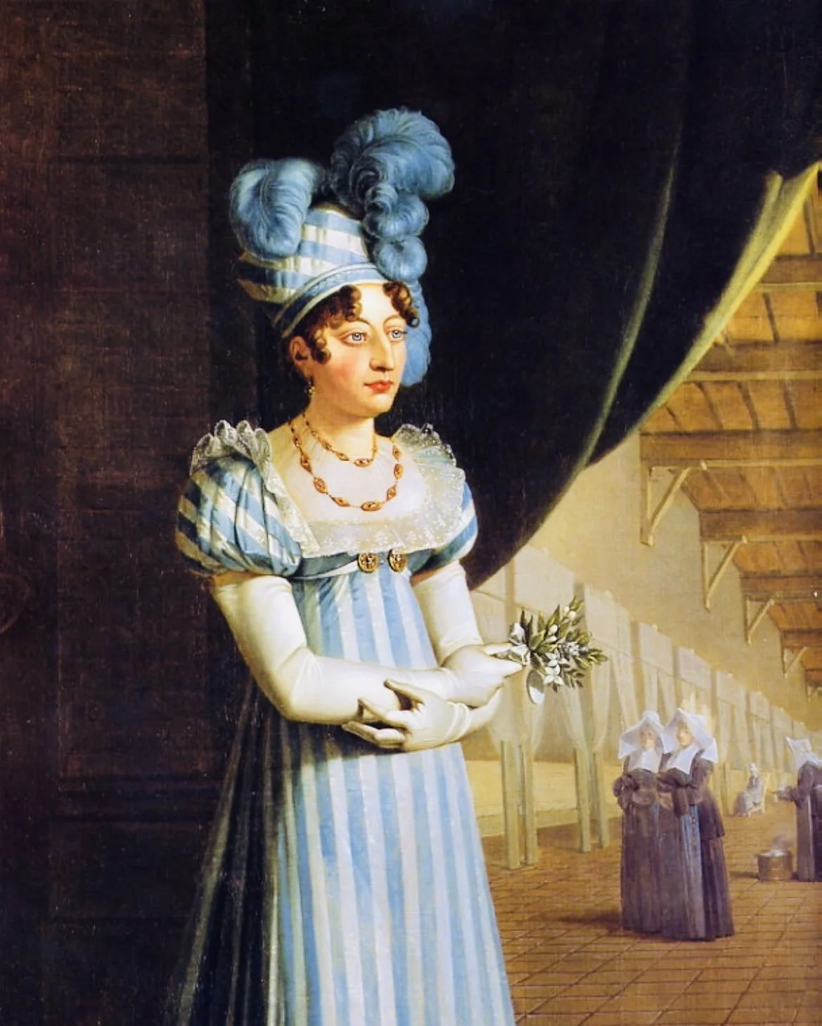 The Duchesse d’Angoulême went everywhere without any jewelry, wearing no diamonds or cashmere shawl, and seemed very much attached to her little English bonnet. Perhaps this calculated simplicity of appearance was to some people a sign of her former misfortunes, and therefore increased their attachment to her, but others considered it a sign of an entirely foreign education and perhaps of that ignorance of these princes regarding the customs and habits of the country they had been called upon to rule.